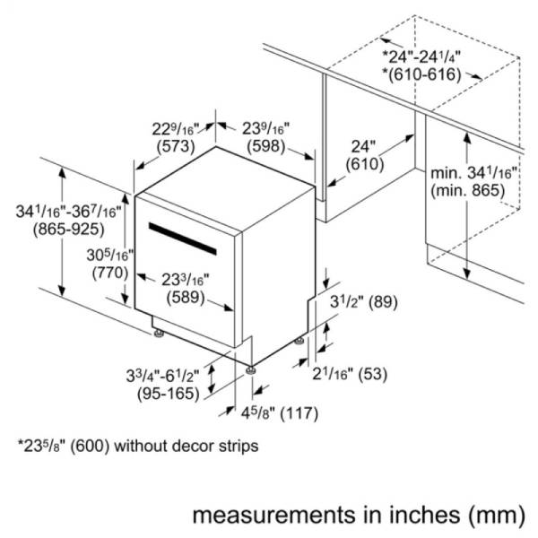| Overall appliance dimensions (HxWxD) (in) | 865 x 598 x 573 mm |