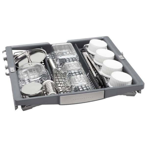 The Bosch 800 Series SHX78CM5N Dishwasher is a 24-inch, fully integrated built-in smart appliance that brings both style and efficiency to your kitchen. With a generous 16-place setting capacity, this dishwasher is ideal for large families or those who entertain frequently. It features a third rack, perfect for knives and flatware, optimizing space and ensuring thorough cleaning.