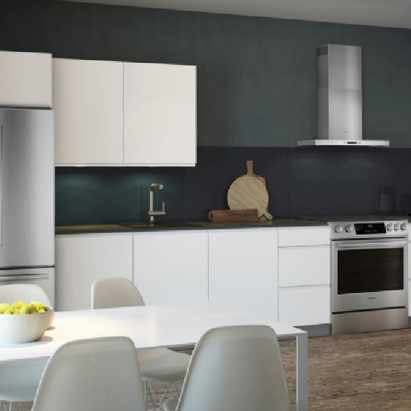 Elevate your kitchen with the Bosch Wall Mount Chimney Range Hood from Teletime, where innovation meets elegance to transform your cooking space.