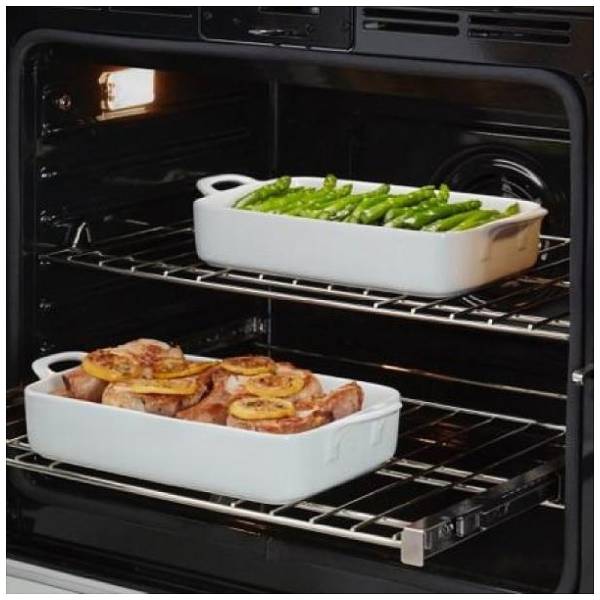 A standout feature is the integrated Temperature Probe, which monitors the internal temperature of your dishes, guaranteeing perfect results with every roast, poultry, or pork dish. The oven also includes a Soft Close Door and a Telescopic Gliding Extension Rack, providing easy and safe access to your dishes while minimizing the risk of burns or spills.