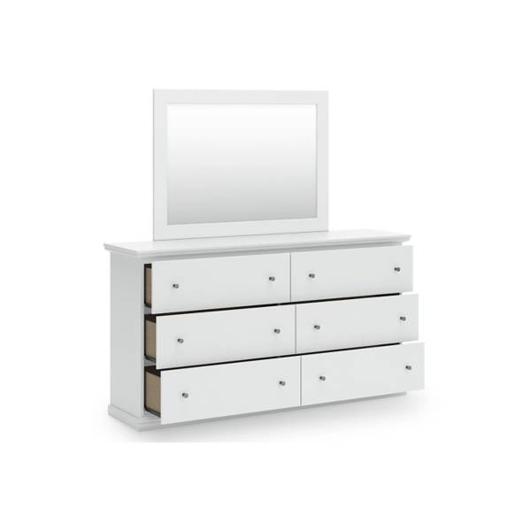 The Bostwick Shoals Dresser and Mirror brings a classic touch with its clean lines and bright white finish.Spacious drawers offer practical organization while complementing a wide range of bedroom décors.Crafted with lasting durability, it delivers timeless elegance and everyday functionality.