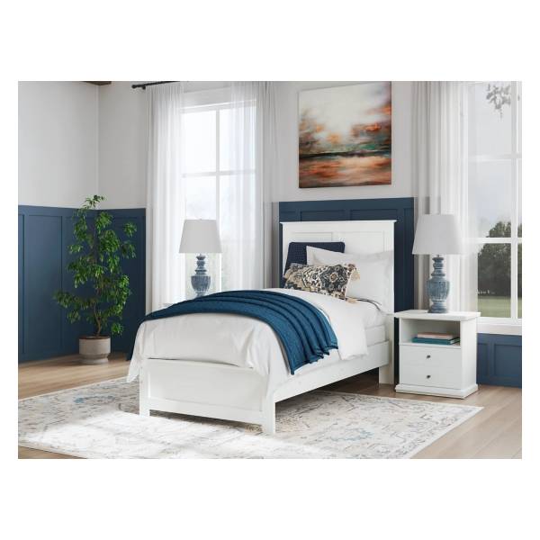 The Bostwick Shoals Twin Panel Bed offers a perfect blend of timeless elegance and subtle charm, making it an ideal addition to any bedroom. Its clean, crisp design effortlessly captures the essence of understated sophistication, whether you're aiming for a cozy cottage-chic vibe or a modern, classic aesthetic. The versatile solid white finish provides the perfect canvas to complement your favorite accents and pops of color, creating a space that feels both fresh and inviting.