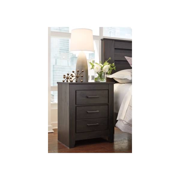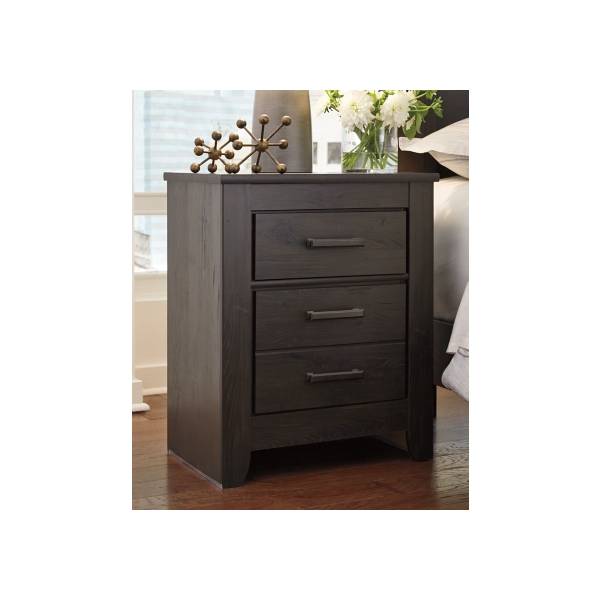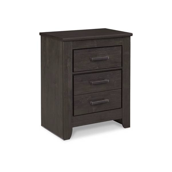 The Brinxton Two Drawer Night Stand showcases bold contemporary styling with a sleek, clean-lined profile.Its spacious drawers offer ample storage, while the dark finish adds a modern edge to your bedroom décor.Crafted for durability, it delivers both function and flair in a striking design.