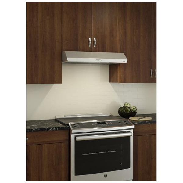 Broan BKDD130SS Range Hood, 30 inch Exterior Width, Under-Cabinet, Under-Cabinet, 375 CFM, Outside / Ducting, LED, Dishwasher Safe Filters, Aluminum Mesh, Stainless Steel colour Blower Included