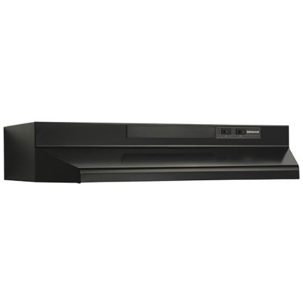 Broan BU230BL Range Hood, 30 inch Exterior Width, Under-Cabinet, Under-Cabinet, 210 CFM, Outside / Ducting, Incandescent, Dishwasher Safe Filters, Charcoal Filters, Black colour Blower Included