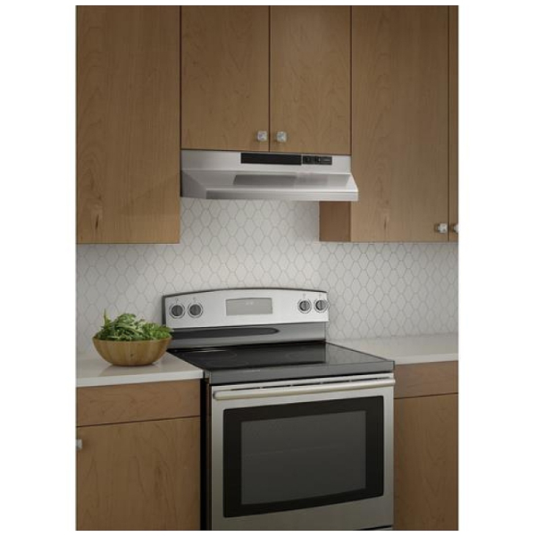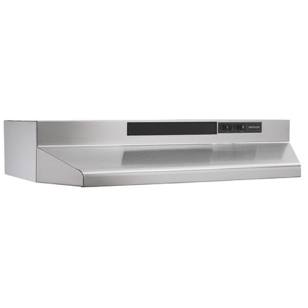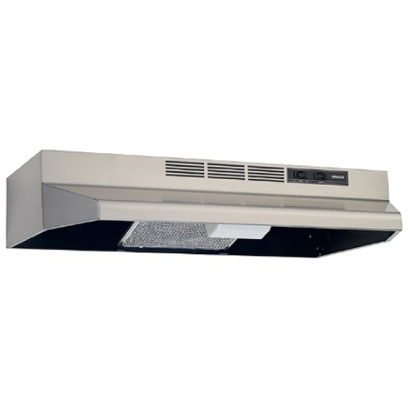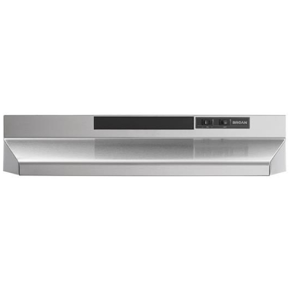 Broan BU230SS Range Hood, 30 inch Exterior Width, Under-Cabinet, Under-Cabinet, 210 CFM, Outside / Ducting, Incandescent, Dishwasher Safe Filters, Aluminum Mesh, Stainless Steel colour Blower Included