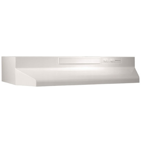 Broan BU230WW Range Hood, 30-Inch Exterior Width, Under-Cabinet, 210 CFM, Outside / Ducting, Incandescent, Dishwasher Safe Filters, Aluminum Mesh, White Finish