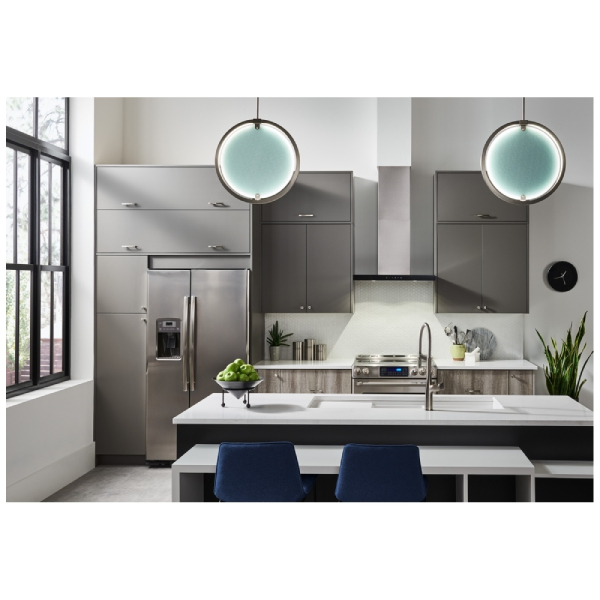 From the leaders in residential indoor air quality, the Broan® T-style range hood is the ultimate solution for today’s contemporary kitchen. It features a sleek, easy-to-clean stainless steel finish paired with a sophisticated black glass panel, bringing both style and function to your cooking space. The 450 Max CFM blower ensures efficient ventilation, effectively removing smoke, odors, and airborne contaminants.