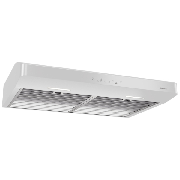 Broan ERLE130WH Range Hood, 30 inch Exterior Width, Under-Cabinet, Under-Cabinet, 600 CFM, Outside / Ducting, LED, Dishwasher Safe Filters, Baffle Filter, White colour Blower Included