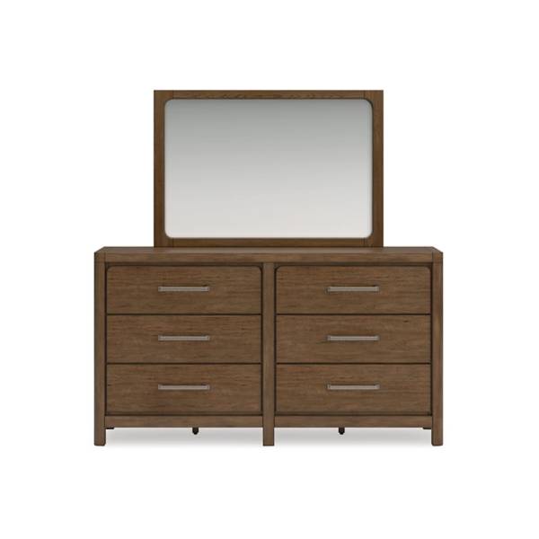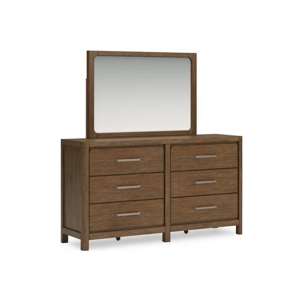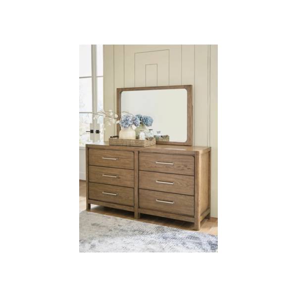Bring home a refined blend of modern lodge charm and farmhouse warmth with the Cabalynn Dresser and Mirror, available at Teletime. Designed to reflect a cozy, welcoming aesthetic, this beautifully crafted set features elegant architectural details and a light brown glazed finish that highlights the natural grain of the wood, adding a touch of rustic sophistication to your bedroom.