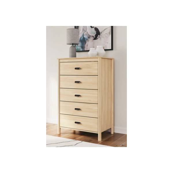 The Cabinella Five Drawer Chest offers ample storage space to keep your essentials organized while enhancing your room's elegance. Built for durability and designed with functionality in mind, it provides a stylish and practical storage solution. This chest seamlessly combines form and function for a refined look in any bedroom setting.