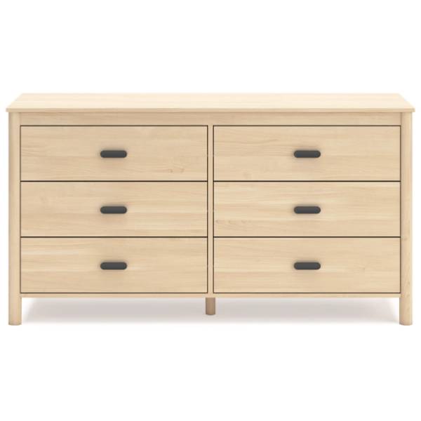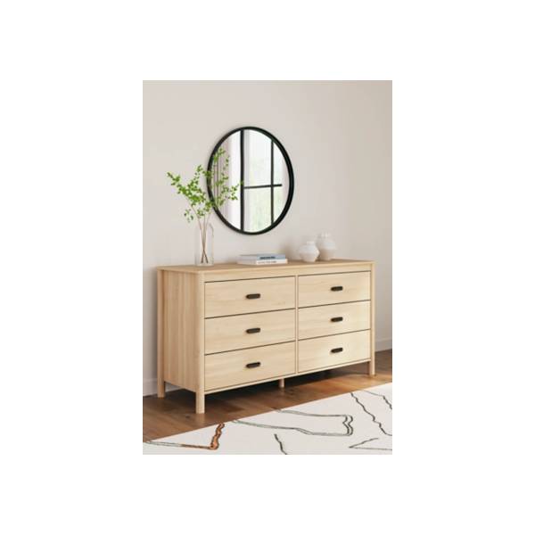 Crafted with engineered wood and a durable decorative laminate, the Cabinella dresser strikes the perfect balance between affordability and long-lasting quality. Six smooth-gliding drawers, featuring vinyl-wrapped sides and backs, provide ample space for clothing and essentials, ensuring effortless organization. Round post legs add subtle charm, while metallic brown-finished drawer knobs offer a refined accent. Prioritizing safety, this dresser meets the latest ASTM stability standards, allowing you to enjoy both peace of mind and stylish functionality. Simple to assemble and timeless in design, the Cabinella dresser is the perfect addition to your home—only at Teletime