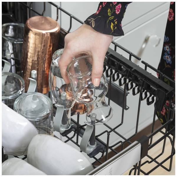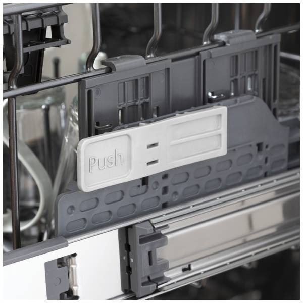 | Rack Features | 2 short articulating plastic utility shelves w/Stemsafe and chop-stick slots 3-Piece Silverware Basket with Cell Covers Adjustable Upper Rack Ball-Tipped Tines Full Extension Slides - Upper |