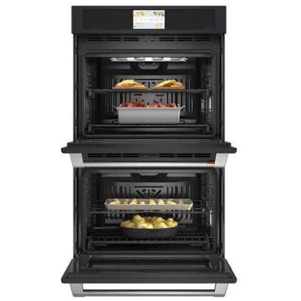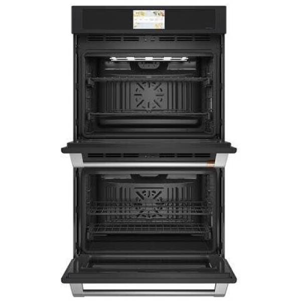Cafe CTD90DP3ND1 Double Wall Oven, 30 inch Exterior Width, Both Ovens Convection, Both Ovens Self Clean, 10.0 cu. ft. Capacity, Temperature Probe, Wifi Enabled, Matte Black colour Air Fry; True European Convection; Telescopic Gliding Extension Rack