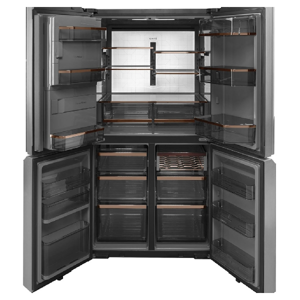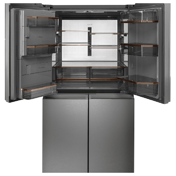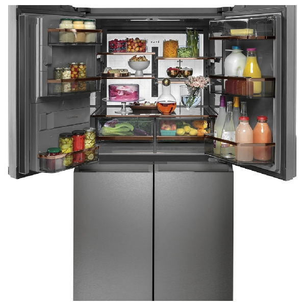Cafe CQE28DM5NS5 French Door Refrigerator, 36 inch Width, ENERGY STAR Certified, 27.4 cu. ft. Capacity, Platinum Glass colour Quad-Door, Modern Glas
