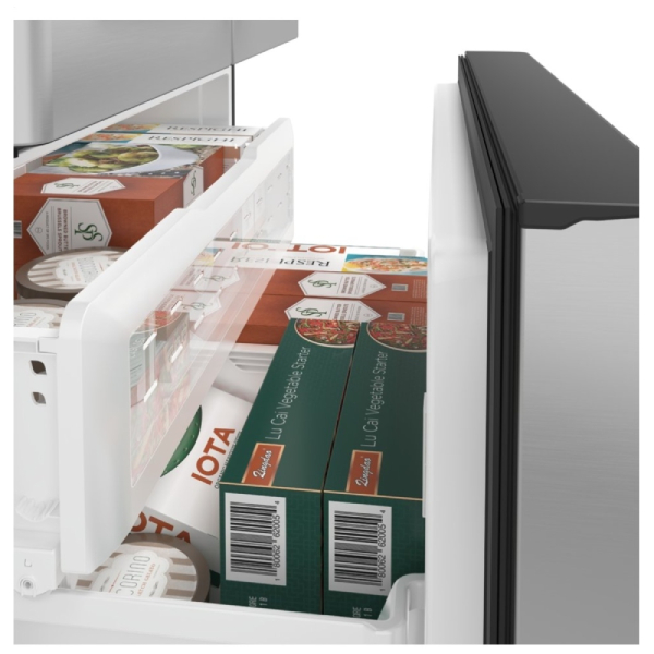 Elevate your kitchen with the Café CYE22UP2MS1 French Door Refrigerator from Teletime, where cutting-edge technology and stunning design come together to redefine your culinary experience.