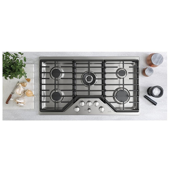 Cafe CGP95362MS1 Gas Cooktop, 36 inch Exterior Width, 5 Burners, Stainless Steel colour