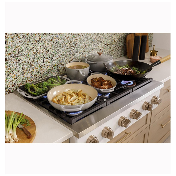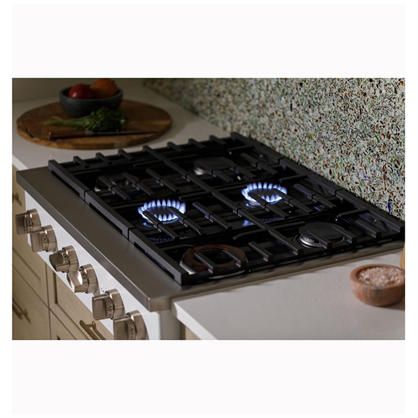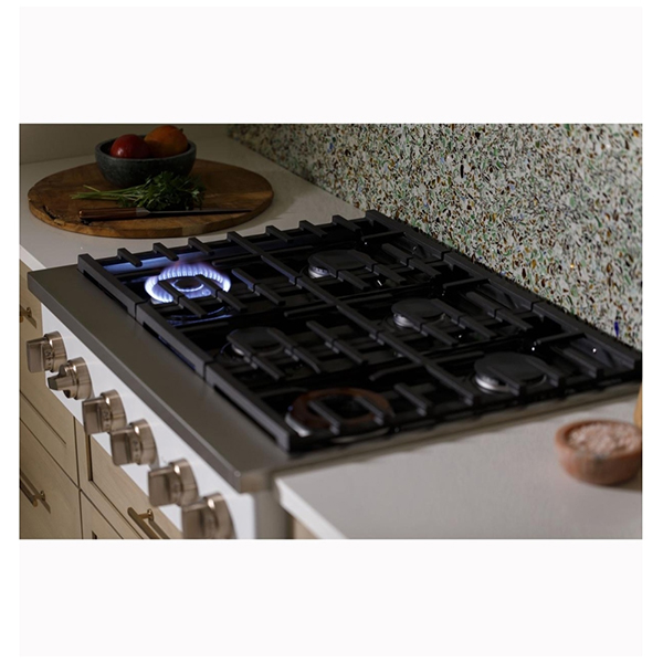Cafe CGU366P2TS1 Gas Rangetop, 36 inch Exterior Width, 6 Burners, Stainless Steel colour Continuous Grates, Tri-Ring Burner, Two Griddle Burners, Two High-Heat Burners, Inspiralâ„¢ Wok Grate, CSA Certified