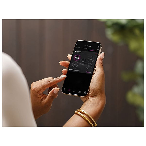 The smooth glass surface is easy to clean, with spills never burning on the cooktop. Its glide touch controls and 19 distinct heat settings allow for effortless control and responsiveness, ensuring that your burners adjust and respond in real time. Guided Cooking, Wi-Fi connectivity, and Chef Connect features further enhance the convenience, letting your burners automatically adjust temperature and timing based on video-guided recipes.