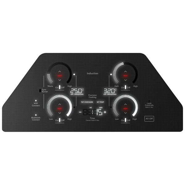 | Cooktop Control Features | All-Off Control Boost (All Elements) Chef Connect Control Lock Capability Keep-Warm Setting Kitchen timer LED Light level adjustment Melt Setting Pan Presence Sensor Pan Size Sensor Sound adjustment Sync-Burners Capability |