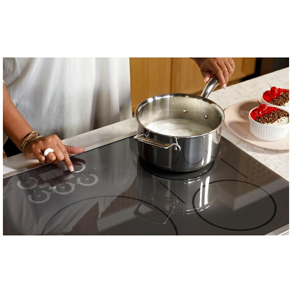 Take advantage of a smart cookware rebate, where smart pans and wireless sous vide probes pair seamlessly with your cooktop, ensuring perfect cooking results every time. A Safer Surface feature detects cookware presence, turning off the burner once the pan is removed.