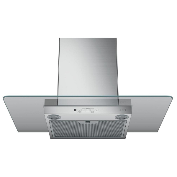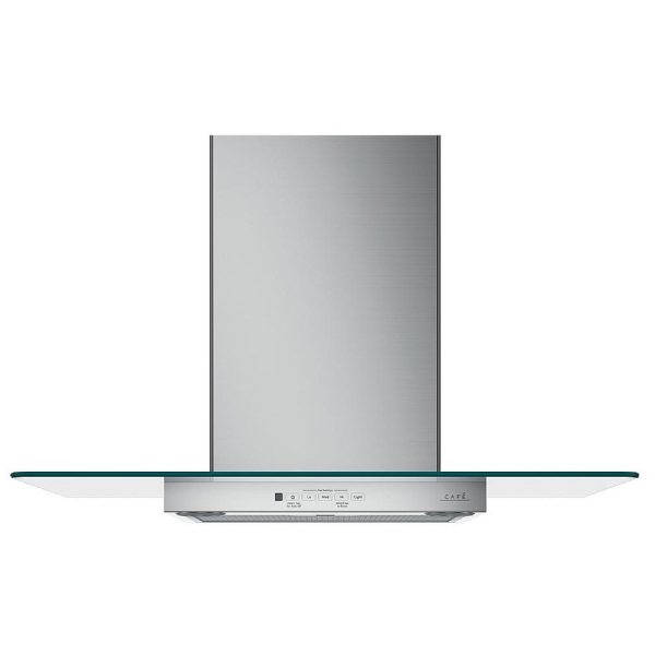 Cafe CVW73012MSS Range Hood, 30 inch Exterior Width, Chimney, Wall Mounted, 350 CFM, Inside / Recirculating, Halogen , Dishwasher Safe Filters, Aluminum Mesh, Stainless Steel colour Blower Included
