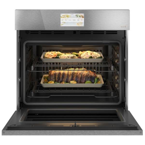 Cafe CTS90DM2NS5 Single Wall Oven, 30 inch Exterior Width, Convection, Self Clean, 5 cu. ft. Capacity, Temperature Probe, Wifi Enabled, Stainless Steel colour In-Oven Camera, Telescopic Gliding Extension Rack,Soft Close Door, True European Convection