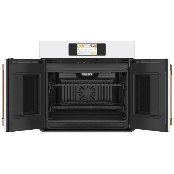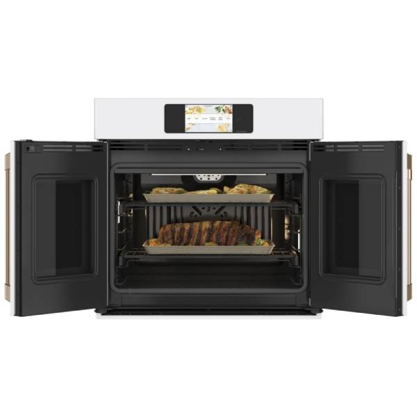 Cafe CTS90FP4NW2 Single Wall Oven, 30 inch Exterior Width, Convection, Self Clean, 5.0 cu. ft. Capacity, Temperature Probe, Wifi Enabled, Matte White colour Air Fry; Telescopic Gliding Extension Rack, True European Convection