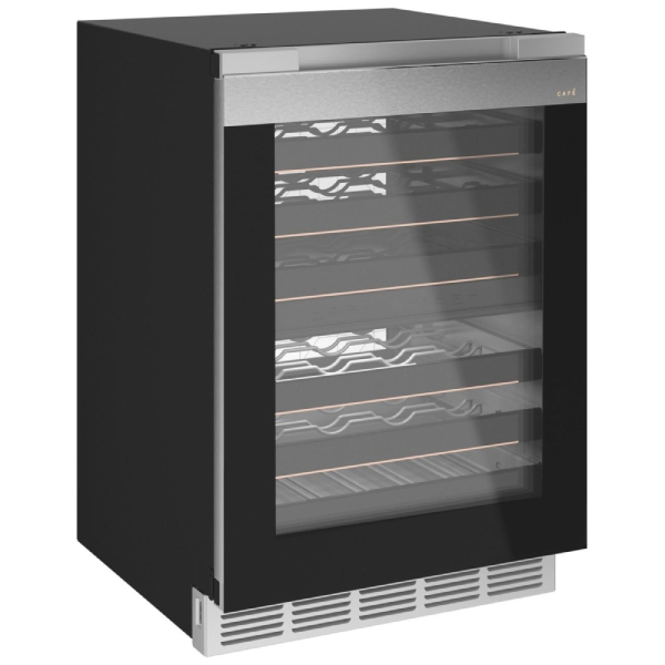 Cafe CCR06DM2PS5 Wine Cooler, 23 3/4 inch Width, 24 inch Width, 4.7 Wine Bottle Capacity, Stainless Steel colour Dual Zone, WiFi Enabled, Full Extension Wine Racks, LED Light Wall, Door Alarm, Temperature Alarms, and Sabbath Mode