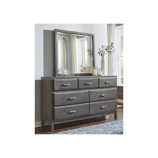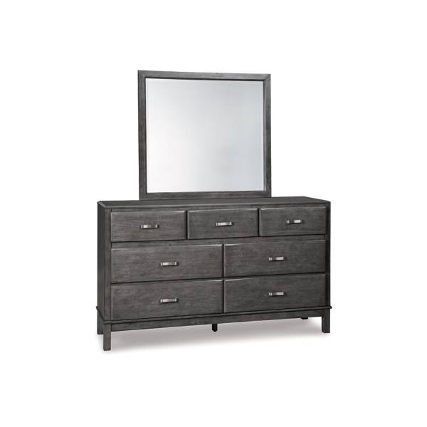 The Caitbrook Dresser and Mirror set brings contemporary charm with its sleek design and versatile gray finish. Multiple spacious drawers offer ample storage for everyday essentials. The matching mirror completes the look with modern elegance and functionality