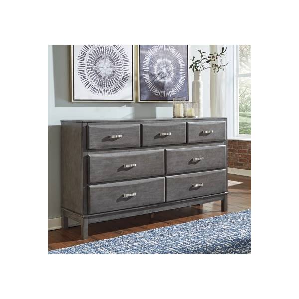 The Caitbrook Dresser embodies contemporary elegance with a refined yet relaxed design, making it a versatile addition to any modern bedroom. Its sleek silhouette and thoughtfully crafted details highlight a perfect balance of sophistication and functionality. Finished in a distinctive weathered gray tone, the dresser exudes a casual charm that effortlessly enhances any décor.