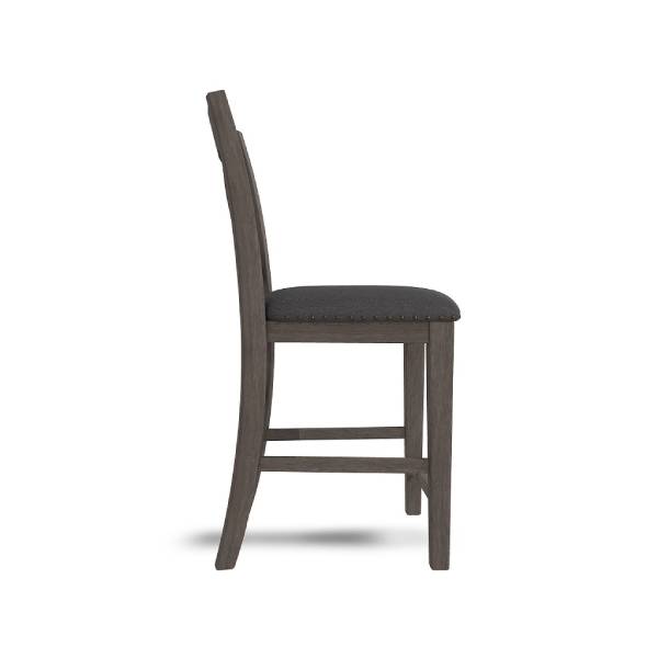 Crafted from solid acacia wood and finished with an antiqued gray wash, this bar stool combines durability with timeless style. The nailhead trim further enhances its sophisticated look.