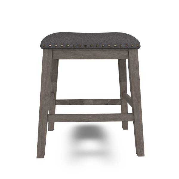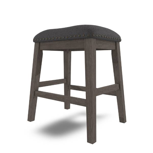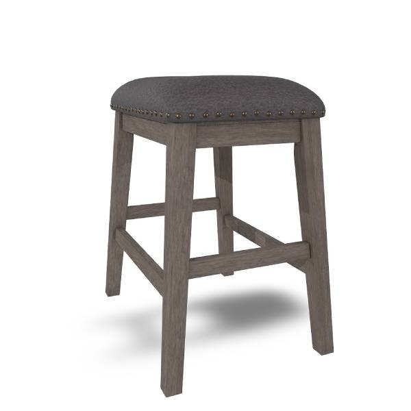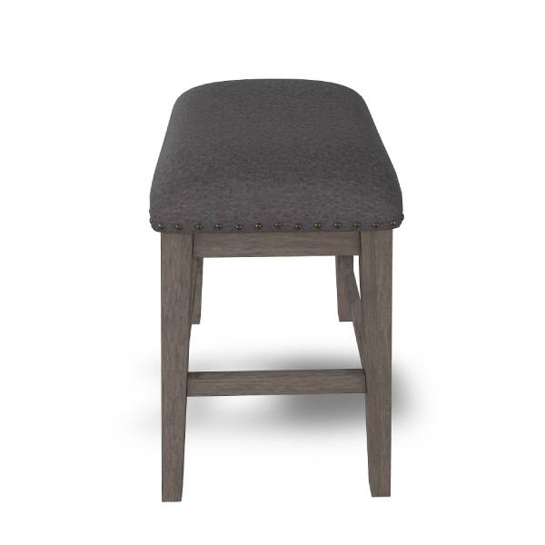 Covered in complementary textured gray fabric, the stool's cushioned seat is upholstered over foam for a comfortable seating experience. The nailhead trim adds a classic detail to the overall design.