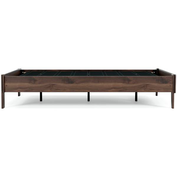 The Calverson King Platform Bed delivers a bold and contemporary aesthetic that transforms your bedroom into a sophisticated retreat. Its clean-lined silhouette and rich brown finish with a subtle wood grain texture evoke a sense of warmth and modern elegance. The sleek, minimalist design makes it a perfect addition to both modern and transitional spaces, offering a stylish yet practical sleeping solution.