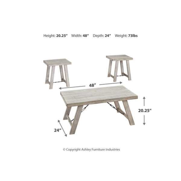 Designed with a weathered whitewash finish, the Carynhurst tables exude a relaxed and inviting ambiance. The wood grain detailing adds an authentic, reclaimed look that brings warmth and texture to your room. Each piece features classic design elements like thick, sturdy legs and plank-style tops that reflect traditional craftsmanship with a modern touch.