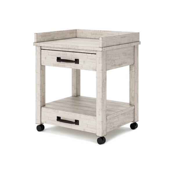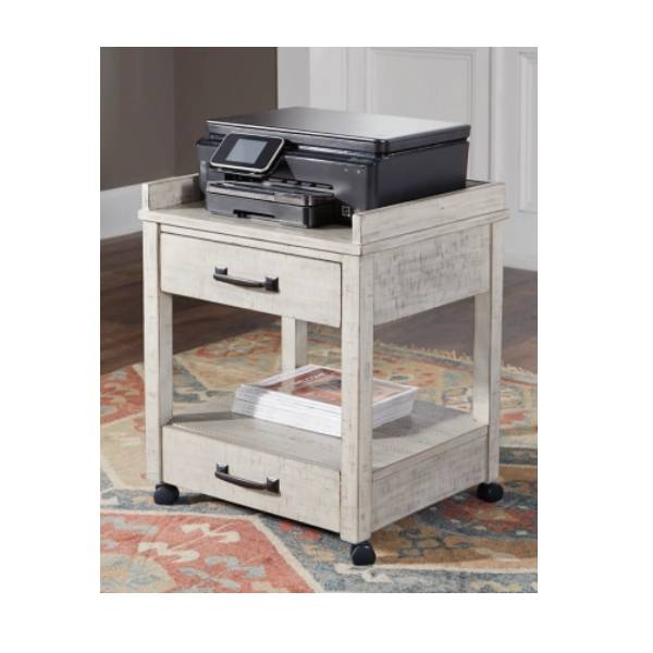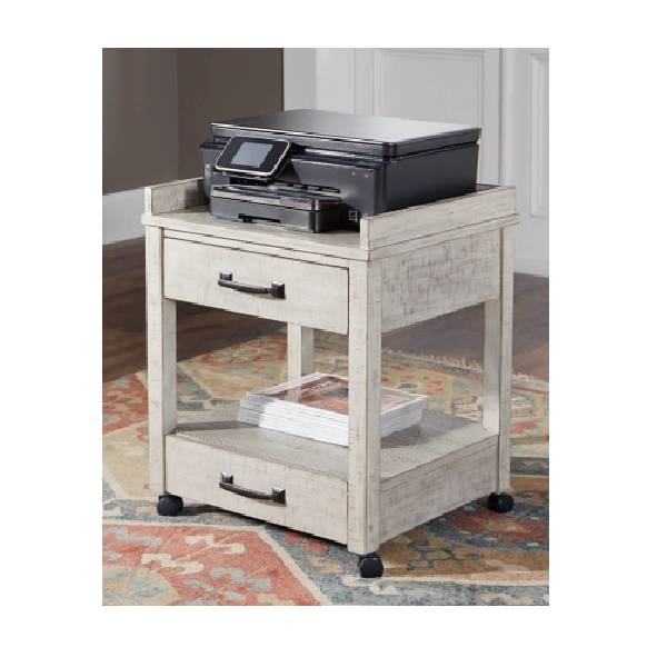 Introduce a fresh look to your home office with this stylish printer stand, designed in a modern farmhouse style. Its distressed whitewash finish adds a charming, rustic touch to any space.