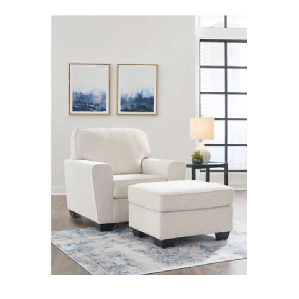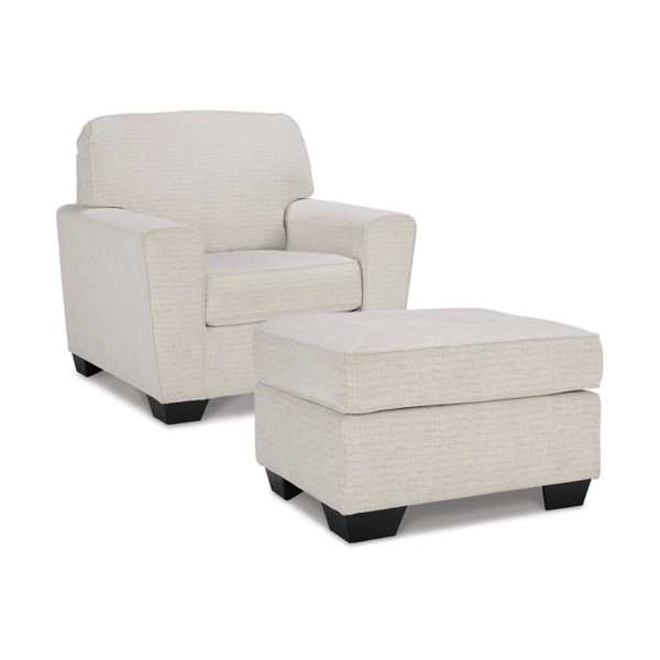 The Cashton Chair and Ottoman set brings a refreshing touch to your living space with its simple yet inviting design. Featuring a chunky silhouette with ample cushioning, this duo is perfect for lounging in comfort. The crosshatched polyester upholstery adds a subtle texture, making it a versatile choice for both classic and contemporary interiors. Built with a durable corner-blocked frame and a high-quality platform foundation system, the chair provides long-lasting support without sagging. The matching ottoman complements the chair with a firm cushion and exposed faux wood-finished feet, creating a cohesive and stylish look. Whether you're unwinding with a book or entertaining guests, this set offers both comfort and elegance.