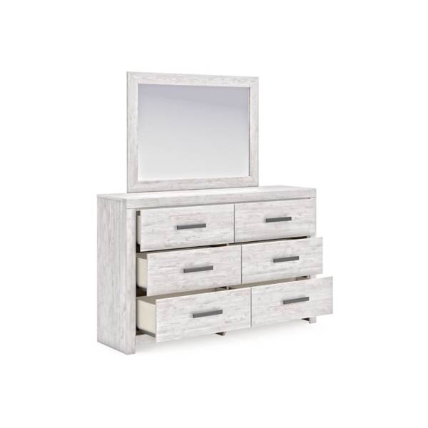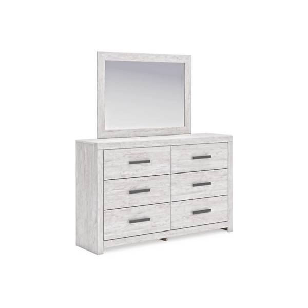 Infuse your bedroom with timeless elegance and rustic character with the Cayboni Dresser and Mirror set—an inviting blend of classic charm and modern functionality, now available at Teletime. The clean-lined silhouette is beautifully accentuated by a whitewashed finish over replicated oak grain, creating a light, airy feel that complements both traditional and contemporary spaces.