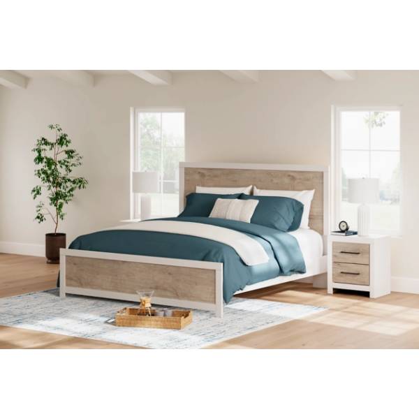 Transform your bedroom into a serene haven with the Charbitt King Panel Bed. Designed to blend relaxed beauty with modern function, this bed features a captivating two-tone aesthetic. The combination of a fresh, replicated oak grain and a soft matte white finish brings a contemporary yet inviting vibe to your space. The simplicity of the design makes it an easy addition to any decor style, offering an effortlessly chic look that elevates your bedroom.