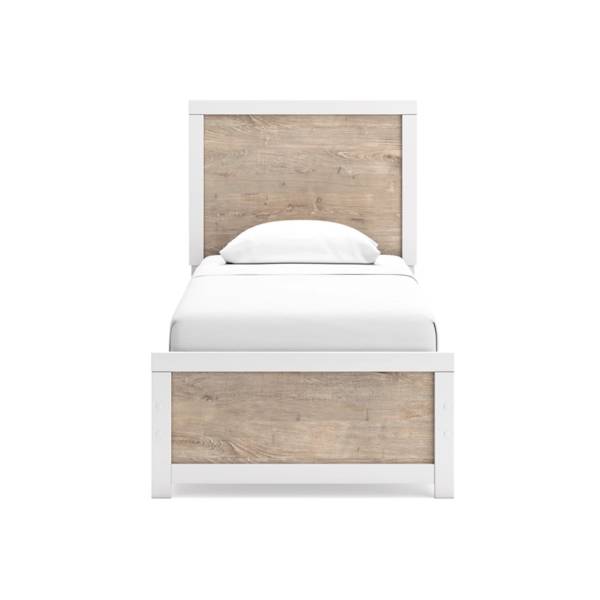 The Charbitt Twin Panel Bed is the perfect blend of casual beauty and functional design, bringing effortless charm to your bedroom. With its two-tone finish, this bed combines a fresh, replicated oak grain with a soft matte white hue, creating a look that is both inviting and contemporary. Its simple yet sophisticated style allows it to complement various bedroom aesthetics, offering a timeless addition to your space.