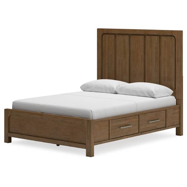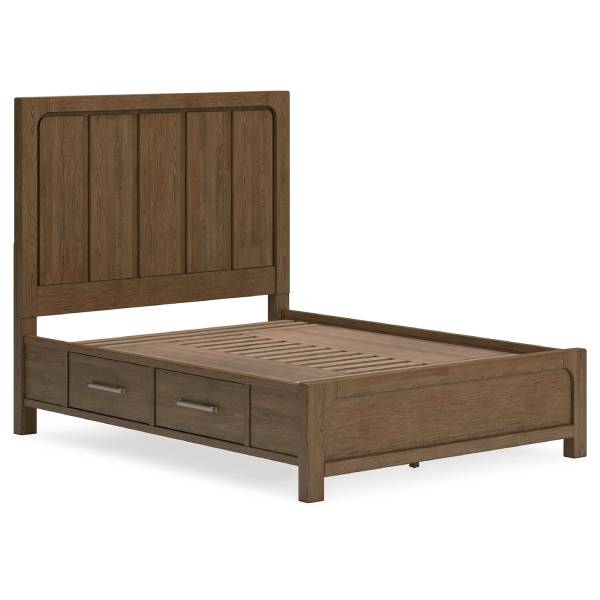The Chirason Queen Panel Bed with Storage combines elegance and functionality, offering a spacious design with ample storage options. Crafted for durability, this bed seamlessly blends stylish aesthetics with practicality. It's the perfect choice for those seeking both form and function in their bedroom.