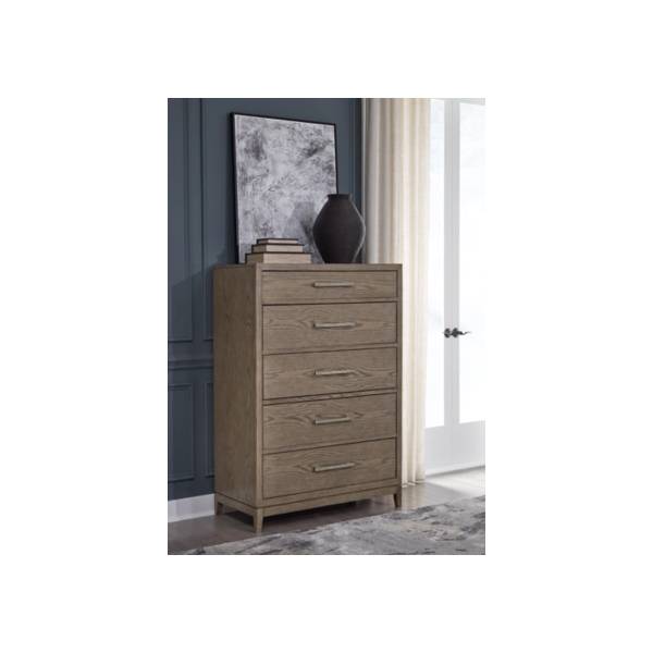 With its ample storage space, the Chrestner chest offers the perfect blend of form and function, allowing you to store your essentials with ease while adding an elegant touch to your bedroom. Exclusively available at Teletime, this chest is the ideal choice for those seeking a refined, streamlined storage solution.