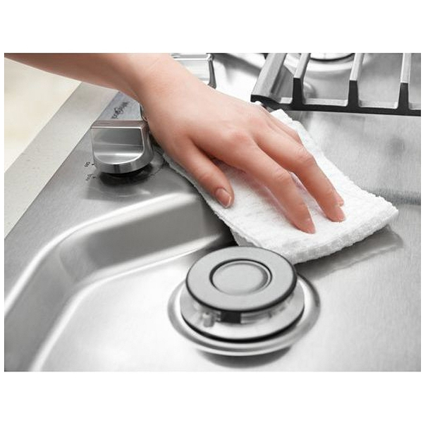 Simplify your kitchen cleanup with the Whirlpool WCG55US0HS 30-inch Gas Cooktop in sleek stainless steel. This cooktop is thoughtfully designed to minimize mess, featuring EZ-2-Lift™ Cast Iron Grates that are hinged for easy access, allowing you to wipe underneath without removing them. For a deeper clean, these durable grates are also dishwasher-safe. The Upswept SpillGuard™ Cooktop, with its raised edges, helps contain spills, keeping your cooking area clean. Offering versatility, this cooktop can be installed over a wall oven or used on its own.