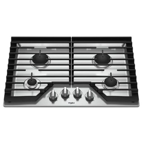 Whirlpool WCG55US0HS Gas Cooktop, 30 inch Exterior Width, 4 Burners, Stainless Steel colour