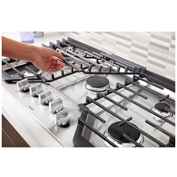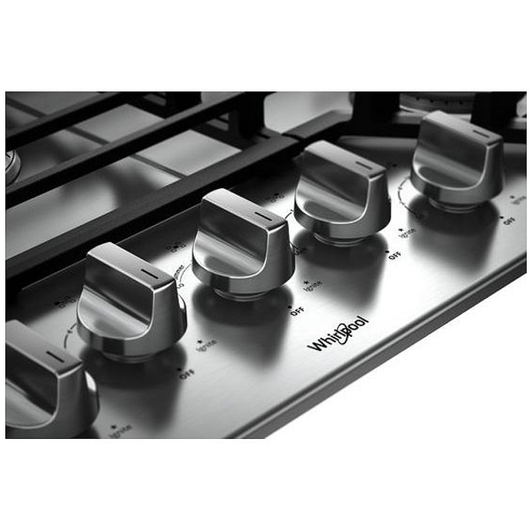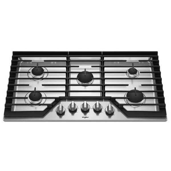 Whirlpool WCG97US6HS Gas Cooktop, 36 inch Exterior Width, 5 Burners, Stainless Steel colour