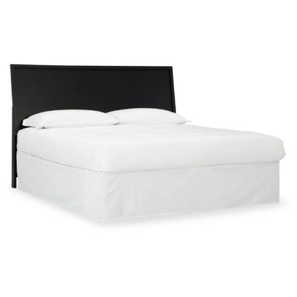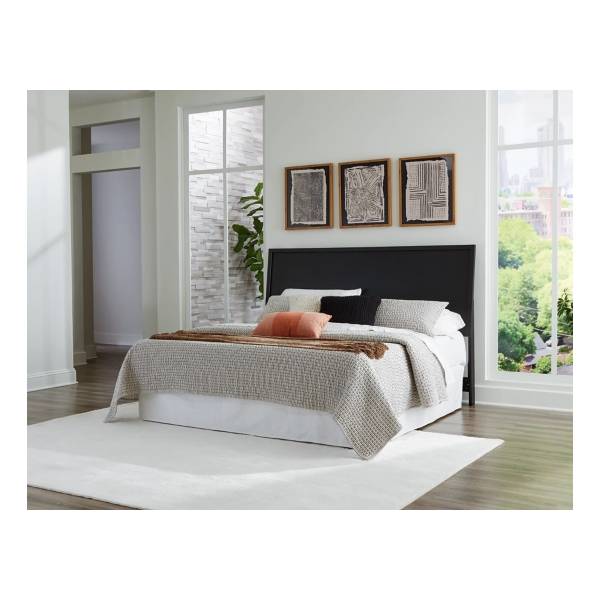 The Danziar King Panel Headboard, available at Teletime, brings contemporary sophistication to your bedroom at an affordable price. Designed with clean lines and a minimalist aesthetic, its matte black finish exudes modern elegance while the subtle wood grain texture adds depth and character. This versatile headboard complements various décor styles—pair it with light tones for a striking contrast or embrace a darker palette for a bold, moody ambiance.