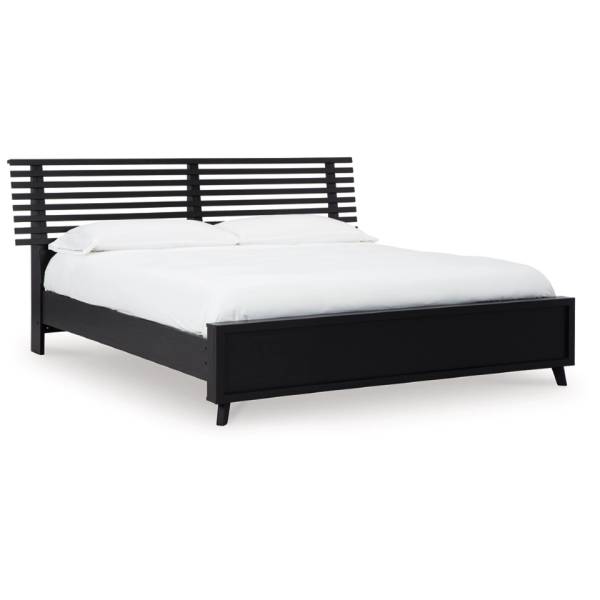The Danziar King Slat Panel Bed offers a perfect blend of sophistication and affordability, making it an ideal choice for savvy shoppers looking to elevate their bedroom decor. This panel bed features a contemporary slatted design that showcases a subtle replicated wood texture, evoking the natural beauty of real wood. Its matte black finish adds a sleek and versatile touch, effortlessly complementing a range of interior styles. Whether you prefer light and bright hues for an airy feel or darker tones for a more dramatic ambiance, this bed adapts to your aesthetic vision with ease.