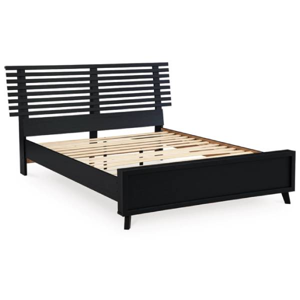 The Danziar Queen Slat Panel Bed combines sleek, modern design with affordable style, offering an ideal solution for those seeking to elevate their bedroom decor without compromising on value. Its subtle, replicated wood texture creates the illusion of natural wood, bringing warmth and character to your space. The matte black finish serves as a versatile backdrop that complements a variety of interior design styles, from light and airy tones to darker, more dramatic palettes.