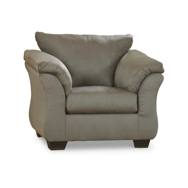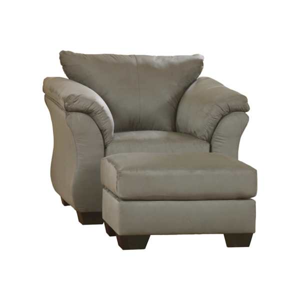The Darcy Chair and Ottoman set is a perfect blend of contemporary style and comfort, featuring clean lines and great curves. Designed to make a statement, this set showcases a striking flared frame and plush pillow-top armrests. With tapered feet on the ottoman and ultra-soft upholstery, it's built to stand out while holding up to the demands of everyday living.