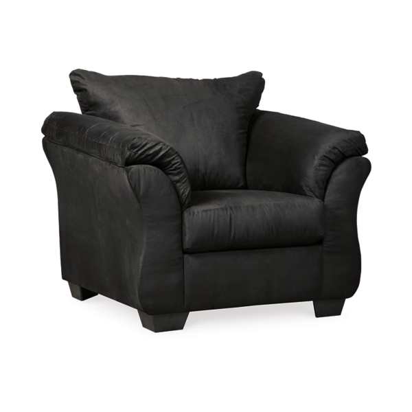 The Darcy Chair and Ottoman set is the epitome of contemporary style with its clean lines and graceful curves. Designed to make a fashion statement, it features a striking flared frame, comfy pillow top armrests, and tapered feet on the ottoman. The ultra-soft upholstery is not only comfortable but also durable, making it perfect for everyday living.